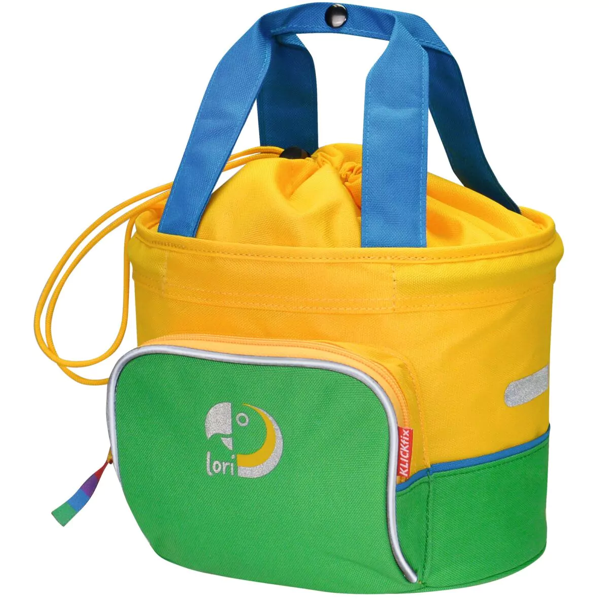Mit diesem bunten Stoffkorb können schon die Kleinsten ihr geliebtes Kuscheltier oder die Snacks fürs Picknick mit „on tour“ nehmen. Durch das vielseitige KLICKfix Lenker-Adapter-System ist der Korb an unterschiedlichsten Fahrrädern, Dreirädern oder am Roller verwendbar. Die Lori Shopper sind vollwertige Fahrradkörbe, mit denen sich kleine und große Schätze sicher transportieren lassen. Durch den Aluminiumbügel ist der Korb besonders leicht. Das Hauptfach mit Kordelzug lässt sich leicht öffnen und schließen.