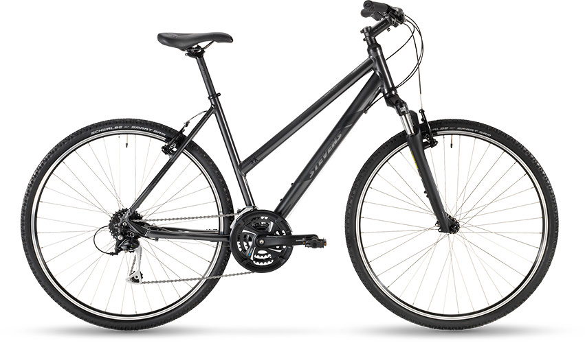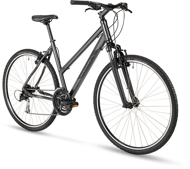 Und nichts überwindet die Grenzen der Routine so leicht wie ein flinkes, zuverlässiges Rad. Geschmeidig bügelt die verstellbare Federgabel der Stadt die Falten weg und dem Land die tiefen Runzeln. Schalten und Walten? Das regelt der Shimano 3x8fach-Antrieb ganz intuitiv.