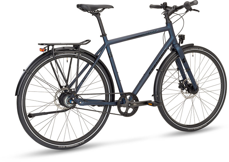 Mit der funktionellen Vollausstattung wird das City Flight Luxe zum edlen Alltagsgefährt für jede Gelegenheit. Damit das auch lange und so sorglos bleibt, haben wir uns für die maximal wartungsarme Kombination aus Nabenschaltung und Riemenantrieb sowie weitere hochwertige Komponenten entschieden. Und der STEVENS Rahmen in noblem “Marine Blue” bietet Wendigkeit und eine entspannte Sitzposition zugleich.